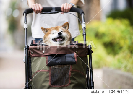 携帯用酸素ボンベを引いて散歩 酸素ボンベを引き歩く