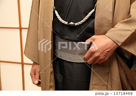 着付けイメージ 男性着物イメージ 角帯 男結び シニアの手