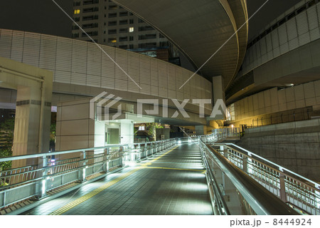 Modern pedestrian pathway or corridor or hallway between train station and other building.