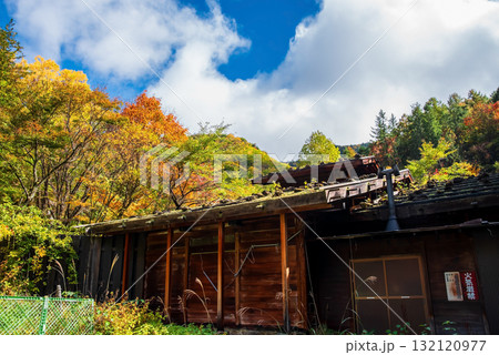 白骨温泉「泡の湯旅館」温泉棟と秋景色