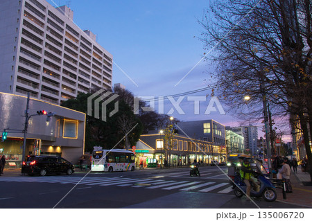 大晦日の広尾(外苑西通り:広尾橋交差点)の夕景 都市景観(2025年12月)