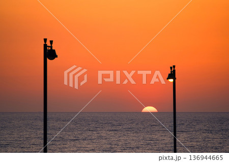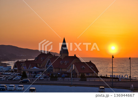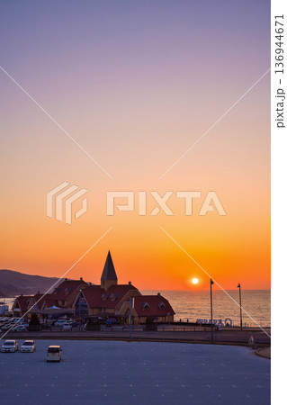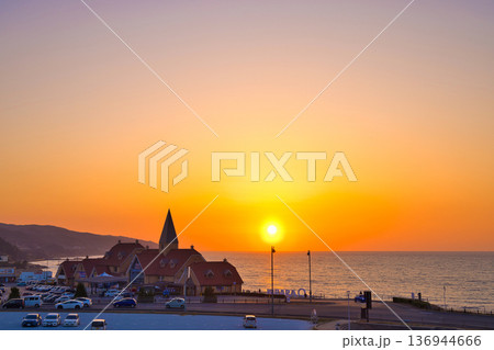 〈島根県〉道の駅キララ多伎 日本海に沈む夕日 11月