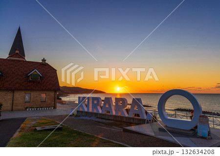 〈島根県〉道の駅キララ多伎 日本海に沈む夕日 2月