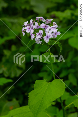 In spring, Lunaria rediviva blooms in the wild in the forest