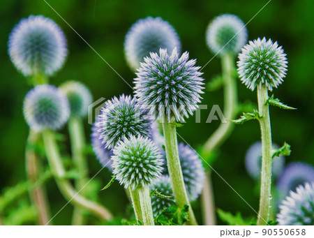 Echinops bannaticus or blue globe-thistle flower heads