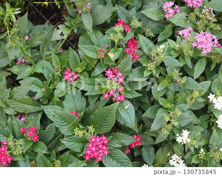 多彩な花色が魅力の、ペンタスの賑やかな群生