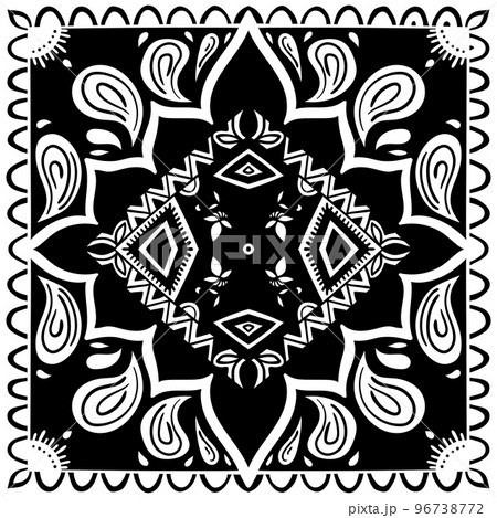 Black and white rug ornamental background with traditional pattern. Ethnic ornament. Design for carpet, yoga mat, textile, greeting card, banner.