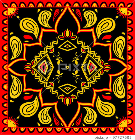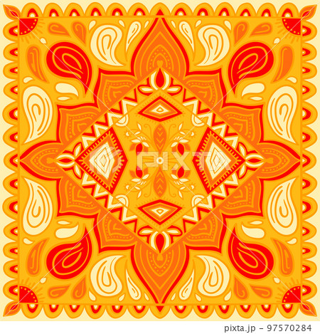Bright colorful rug ornamental background with traditional pattern. Ethnic ornament. Design for carpet, yoga mat, textile, greeting card, banner.