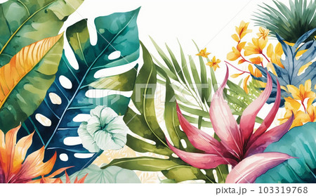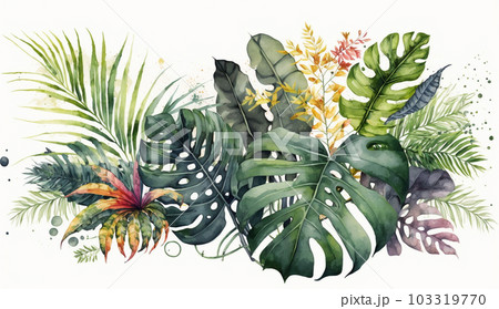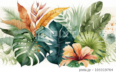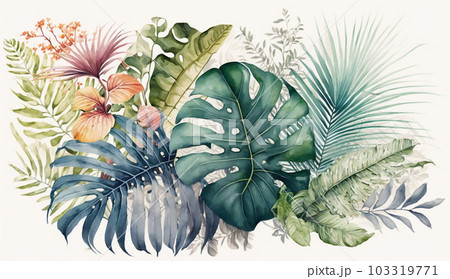 色々な熱帯植物の水彩画