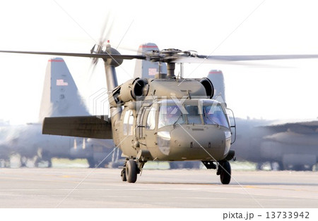 飛行準備する東日本大震災の救助活動にも出動した在日米陸軍のUH-60Aブラックホーク多用途ヘリ