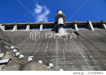 木曽川水系のロックフィルダム阿木川ダム堰堤風景