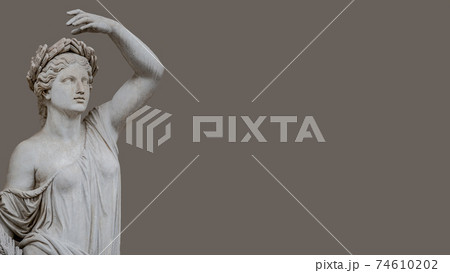 Statue of sensual Roman Renaissance Era woman in circlet of bay leaves, isolated, Potsdam, Germany, details, closeup