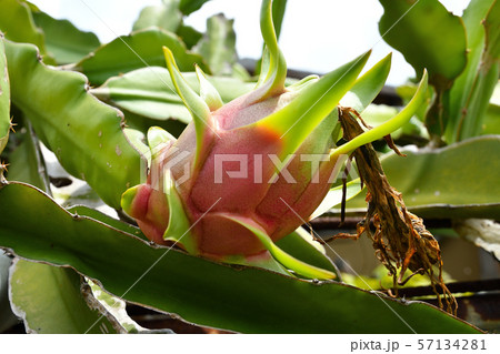 赤くなりはじめたドラゴンフルーツ pitaya dragon fruit 火竜果 ピタヤ