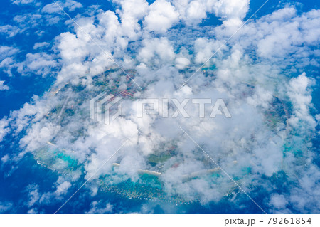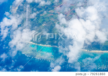 沖縄県 宮古郡 多良間島 多良間村 リゾート 島 天国 夏休み 飛行機 午前 雲 空撮 多良間空港