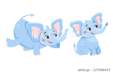 Adorable Cartoon Blue Elephants That Are Playful and Always Happy in a Cheerful Scene