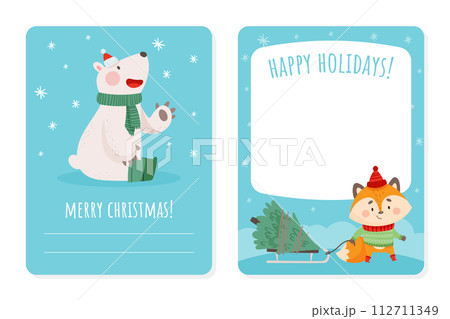Postcard with Cute Christmas Character with Pretty Face Vector Template