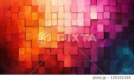 Abstract background Vibrant grid of small squares in shades of red, orange, and pink, creating dynamic and colorful abstract background