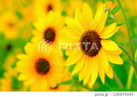 フレッシュイエローの爽やかな向日葵の花
