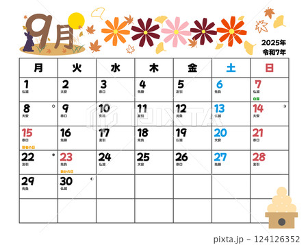 2025年9月カレンダー日曜始まり