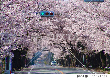 桜並木と交通標識 福島県双葉郡富岡町