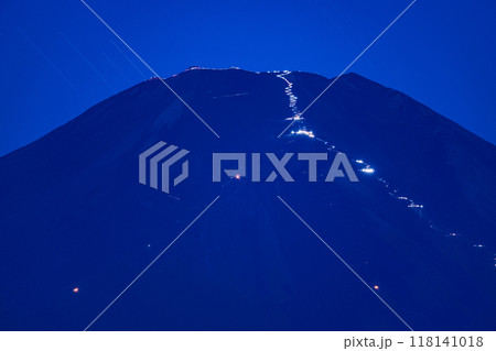 【山梨県】山中湖から望む富士山・登山者の灯り(人文字) 望遠