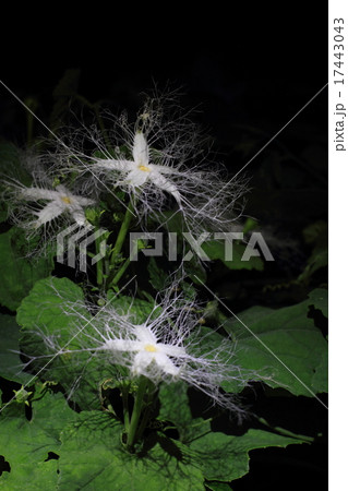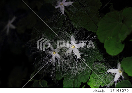 秋にはオレンジ色の長細い実 花は夜咲の一日花妖艶な花 カラスウリ1