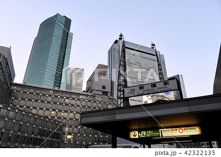 日本の東京都市景観 新橋駅前の街並みを望む(夕景)
