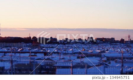 雪が降った日の朝焼けの空