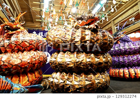 石見神楽 (夜神楽) 神社拝殿舞台で主人公の演者に退治された大蛇の頭