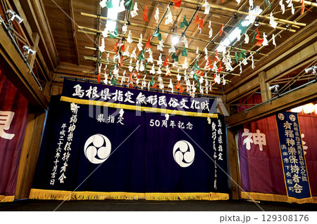 石見神楽 (夜神楽) 神社拝殿会場 能舞の神社幕