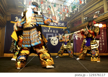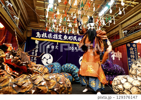 石見神楽 (夜神楽) 神社拝殿舞台で舞う演者