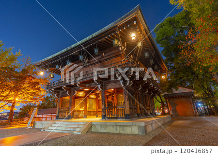関東・紅葉の大山詣り・夜の大山阿夫利神社、ライトアップされた下社境内と拝殿・神奈川県伊勢原市(1)