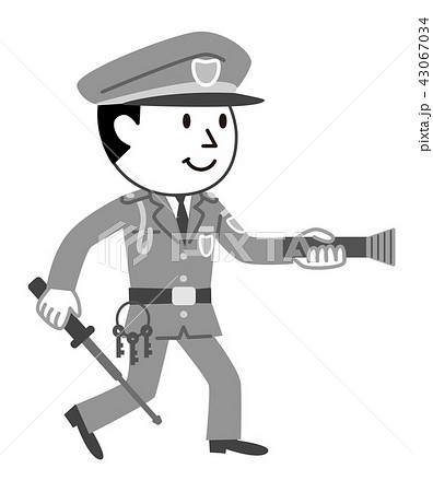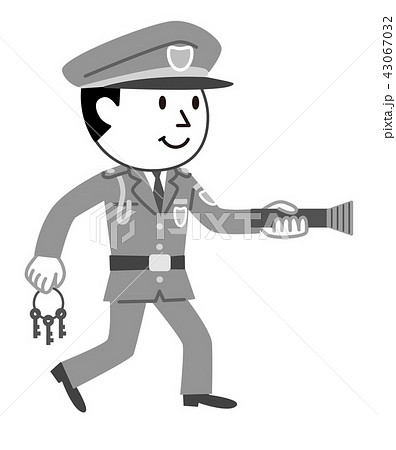 警備員 夜間警備 モノクロ イラスト