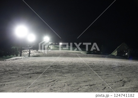 静まり返った誰もいないナイターゲレンデ