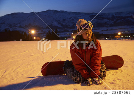 スキー場 ナイター 女性ポートレート