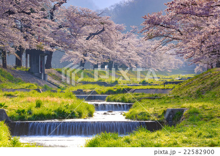 新庄村 がいせん桜 日本の音風景百選 新庄宿の小川