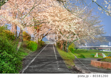 夢前川河川緑地の幻想的な夜桜(兵庫県姫路市広畑区北河原町)※作品コメント欄に撮影位置