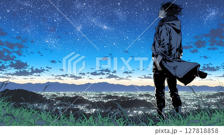 星空を眺めている若い女性