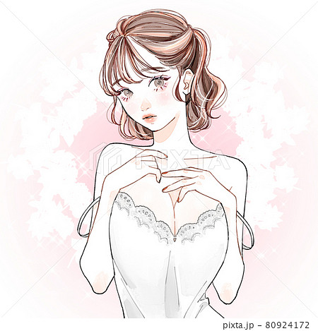 ピンクのブラジャーを着用した若くて可愛らしい女性のイラスト