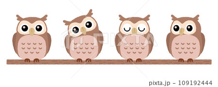 Funny Little Owl with Large Eyes and Beak as Woodland Bird with Wings Big Vector Set