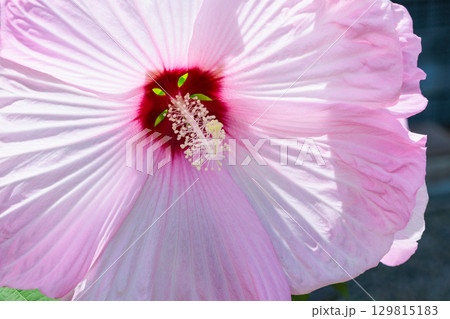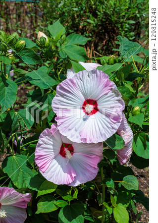 夏のガーデンで咲く淡いピンク色のタイタンビカスの花