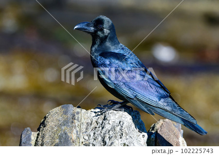 大きな身体で器用に岩場の上を移動するアオサギ