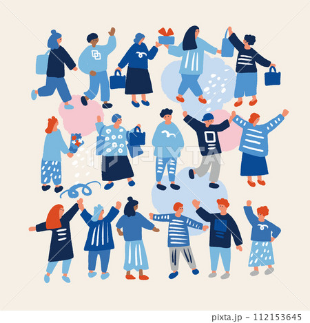 街を歩く人々のシンプルでフラットなイラスト