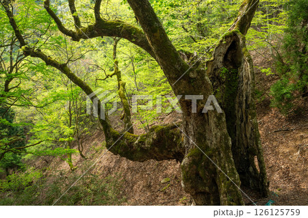 新緑の君尾山の大トチノキ(京都府綾部市)
