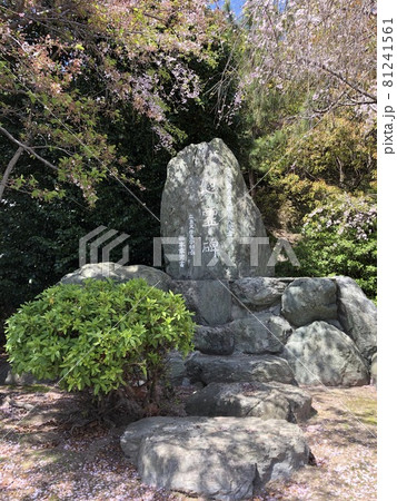 《うさぎの島(大久野島)大久野島神社の大久野島毒ガス障害死没者慰霊碑と桜》(広島県 竹原市)