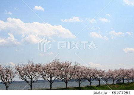 桜並木 霞ヶ浦 青空