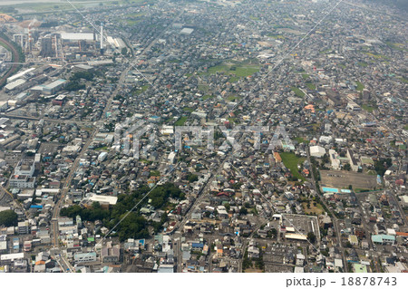 静岡県島田市の大井神社上空から大井川方向を空撮