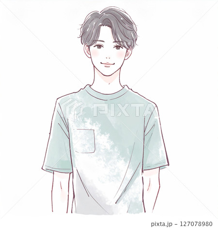 男性, 男の子, 人物, イケメン, 夫, ファッション, tシャツ, スタイル, 手描き, 水彩画