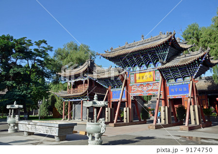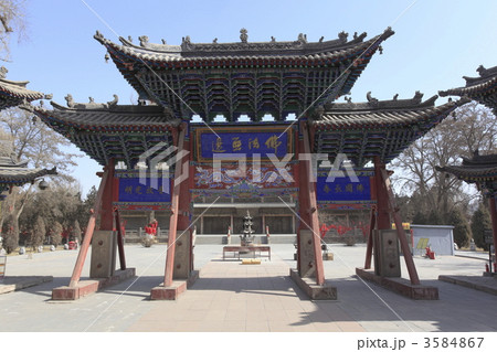 中国 陝西省 咸陽市 大佛寺の山門と境内