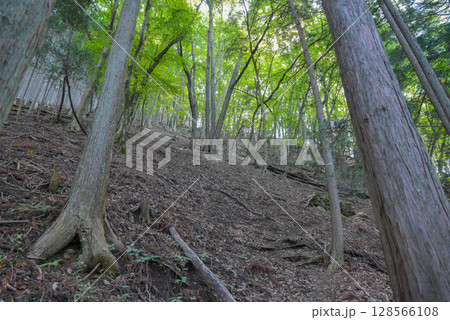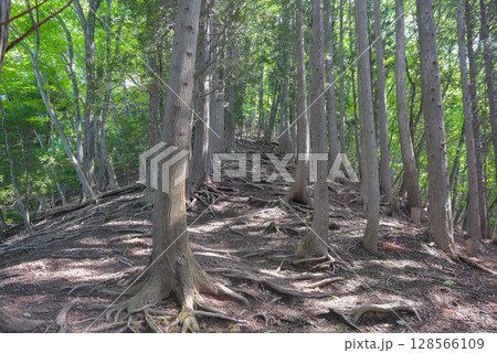 東京都西多摩郡奥多摩町の本仁田山のルートの大休場尾根の木漏れ日